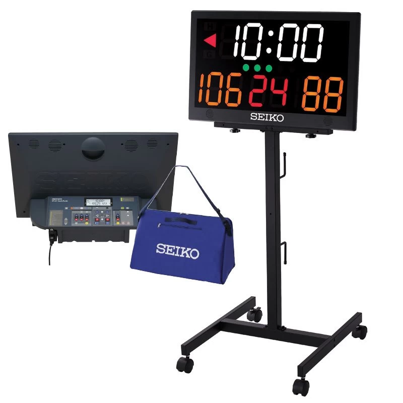 - Programmable game timer counts up or down from 99:59 with scores for two teams up to 199