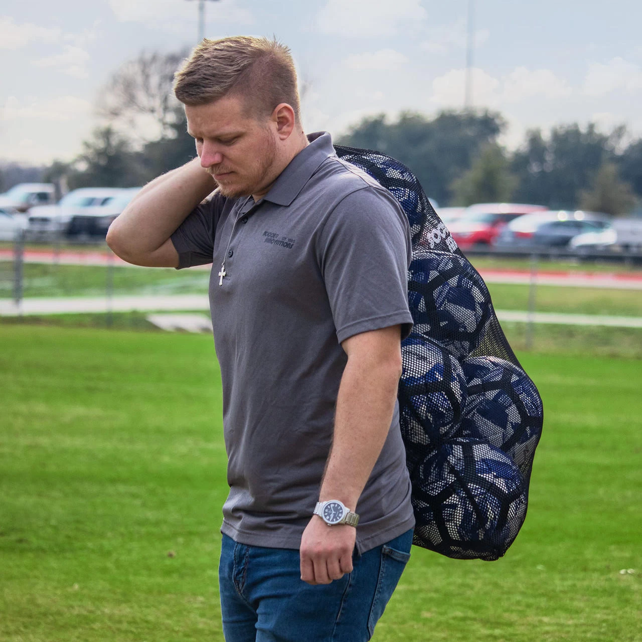 Soccer Innovations mesh ball bag holds 10 soccer balls. Its high quality and durable mesh fabric with an adjustable pull string closure.